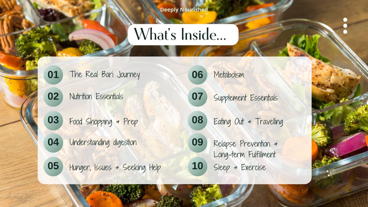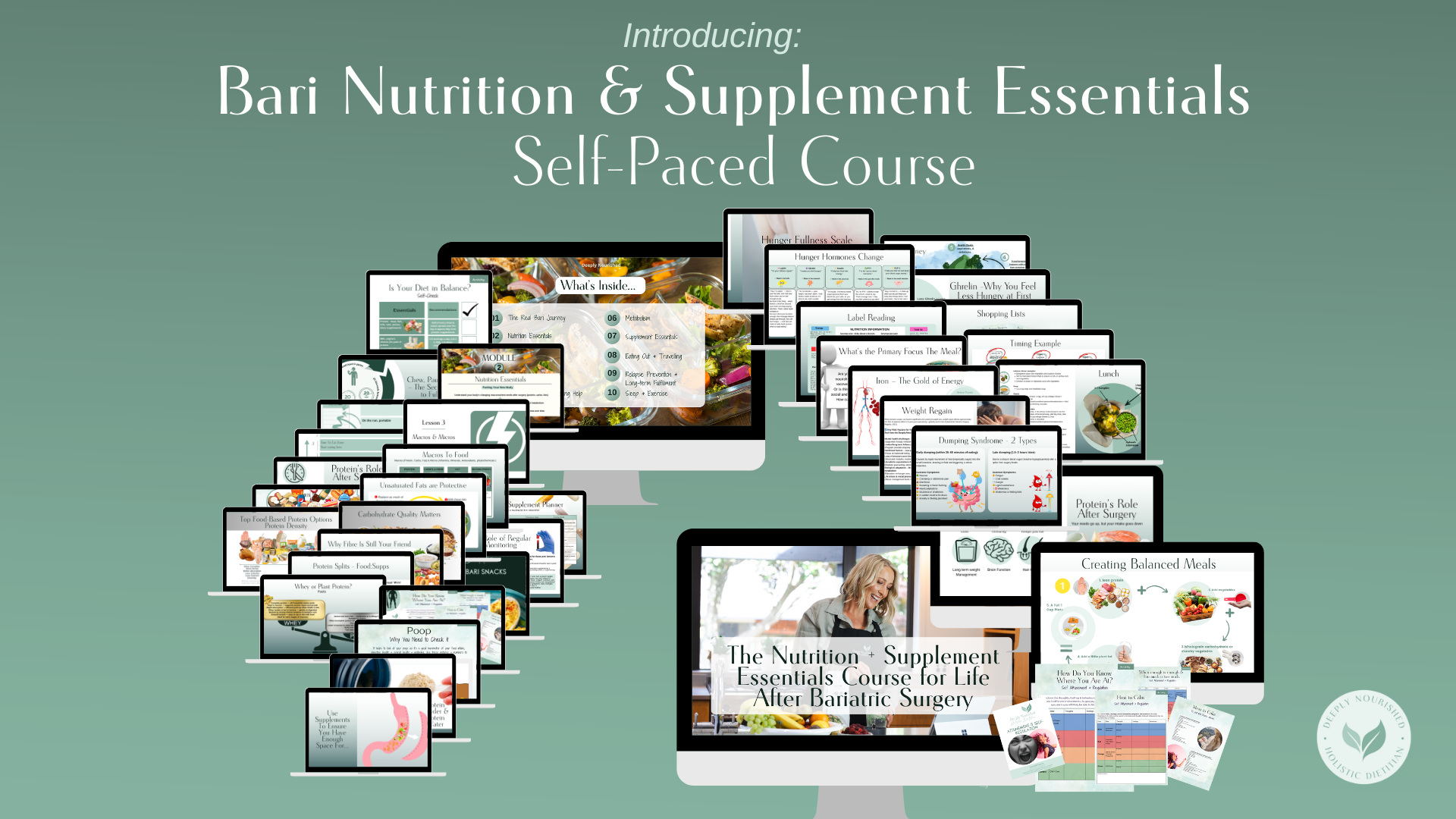 I’m here to help you master the essentials of your new body with Beyond the Scales: Nutrition Essentials - a jam-packed course for life after your surgery. Â